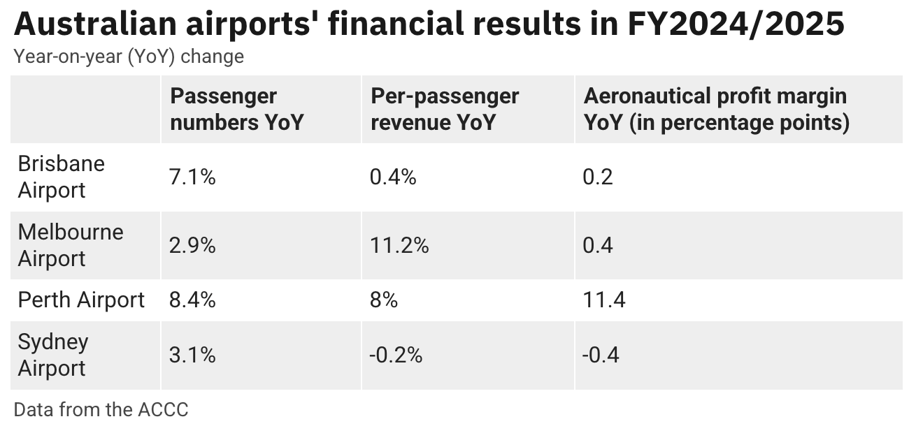 In a recently published report, the Australian Competition & Consumer Commission (ACCC) warned that the country’s largest airports’ infrastructure investments could result in higher airfares, even if the airports are reporting record aeronautical revenues.
