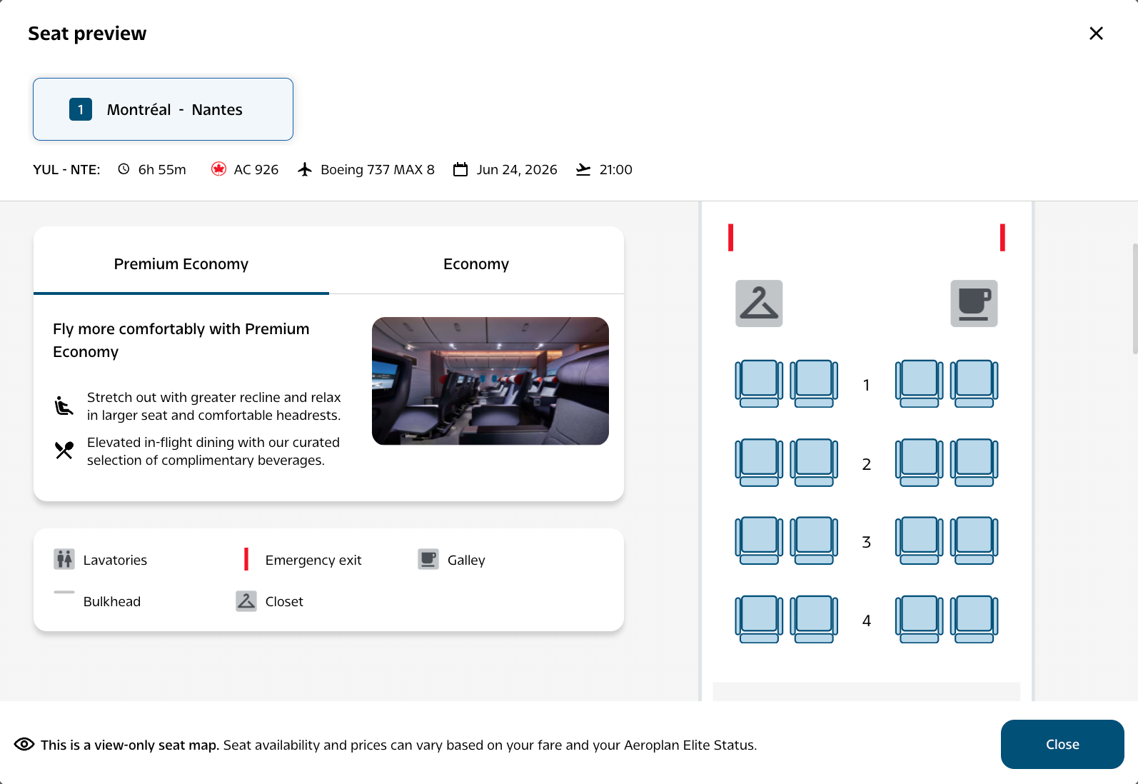 Another new route from YUL will see a narrowbody aircraft “offering a choice of Premium and Economy cabins” flying to Nantes Atlantique Airport (NTE). The seasonal connection will run between June 10, 2026, and October 12, 2026, and will directly compete against Air Transat’s services, which include four weekly A321LR departures between YUL and NTE in June 2026.