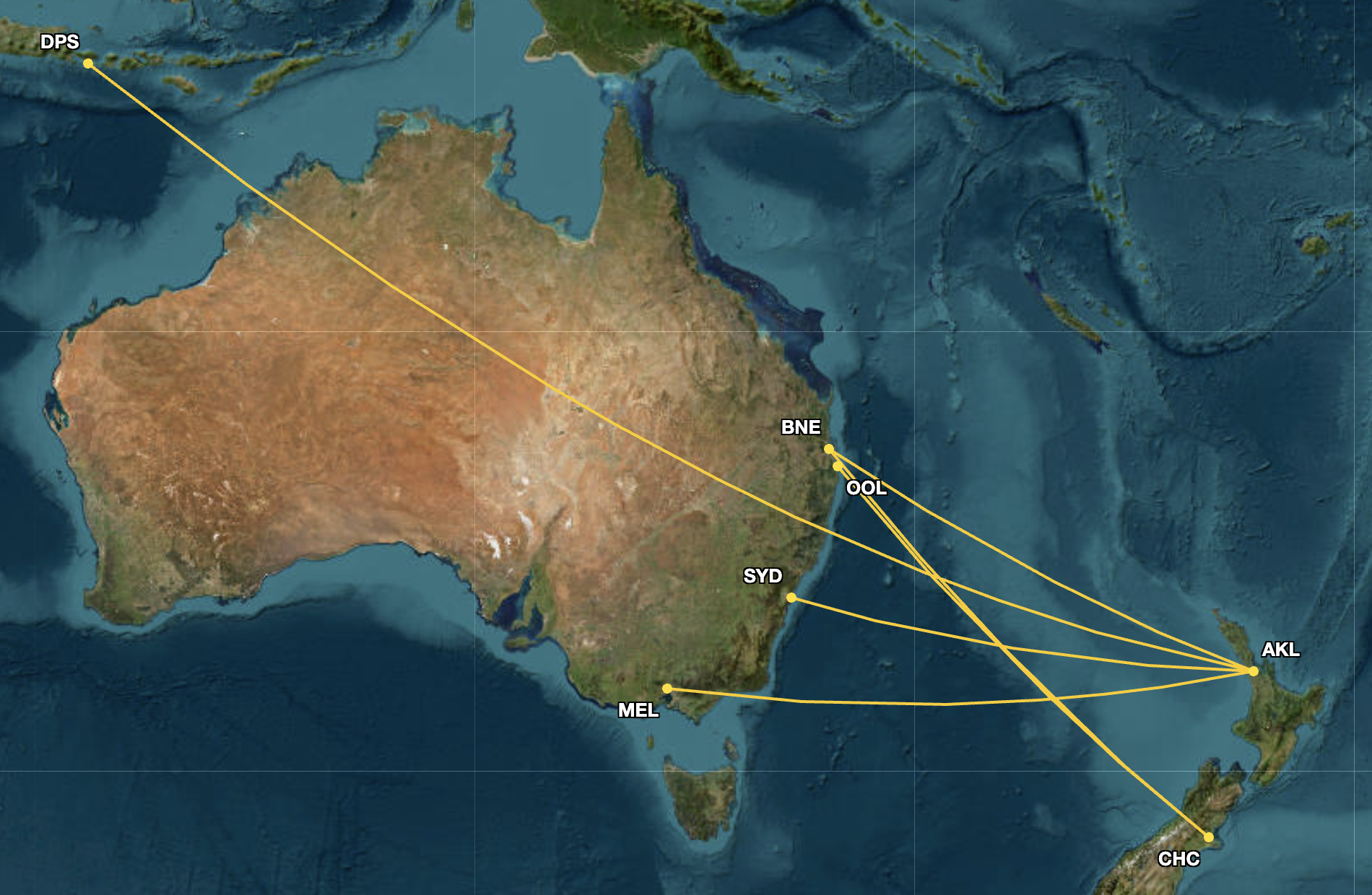 On international flights, the routes that will see some capacity reductions include flights from AKL to three Australian destinations and Denpasar I Gusti Ngurah Rai International Airport (DPS), serving the island of Bali, Indonesia, and two Australia-bound routes from CHC.