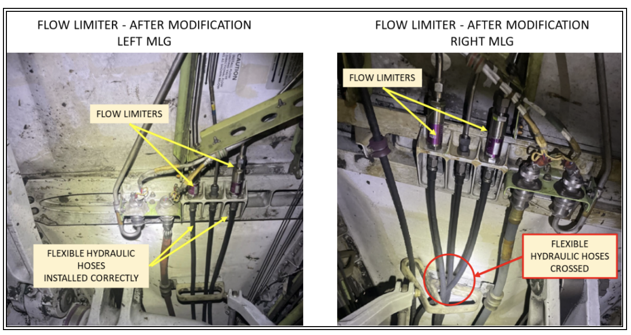 To comply with the directive, operators will have to conduct a general visual inspection (GVI) of the left and right MLG brake hydraulic hoses for any crossed ones, conduct antiskid valve and transducer operational tests, and take corrective actions if needed.