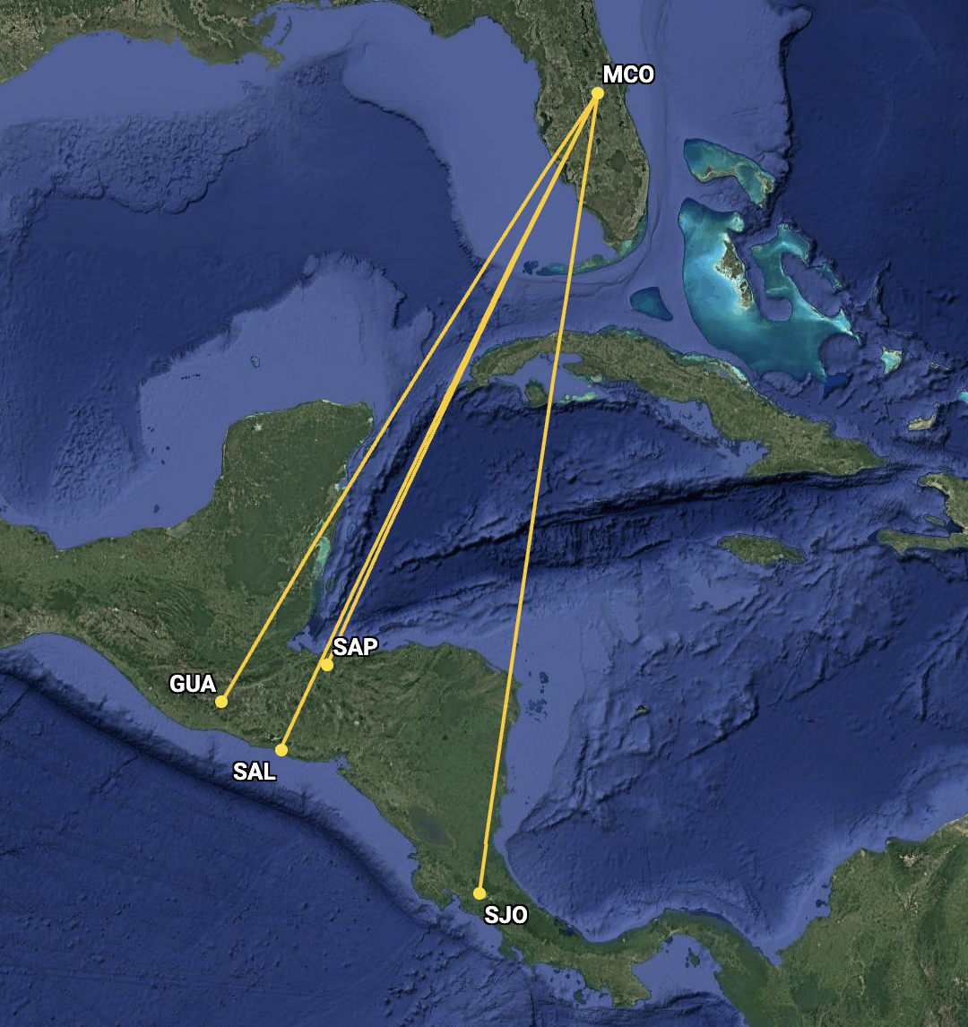 According to Cirium’s Diio Mi, Spirit Airlines has currently planned to fly from MCO to GUA, SAP, and SJO in December, serving the three itineraries daily. JetBlue, Volaris, and Southwest Airlines also have daily flights between MCO and SJO, while avianca has four weekly departures from MCO to SAL.