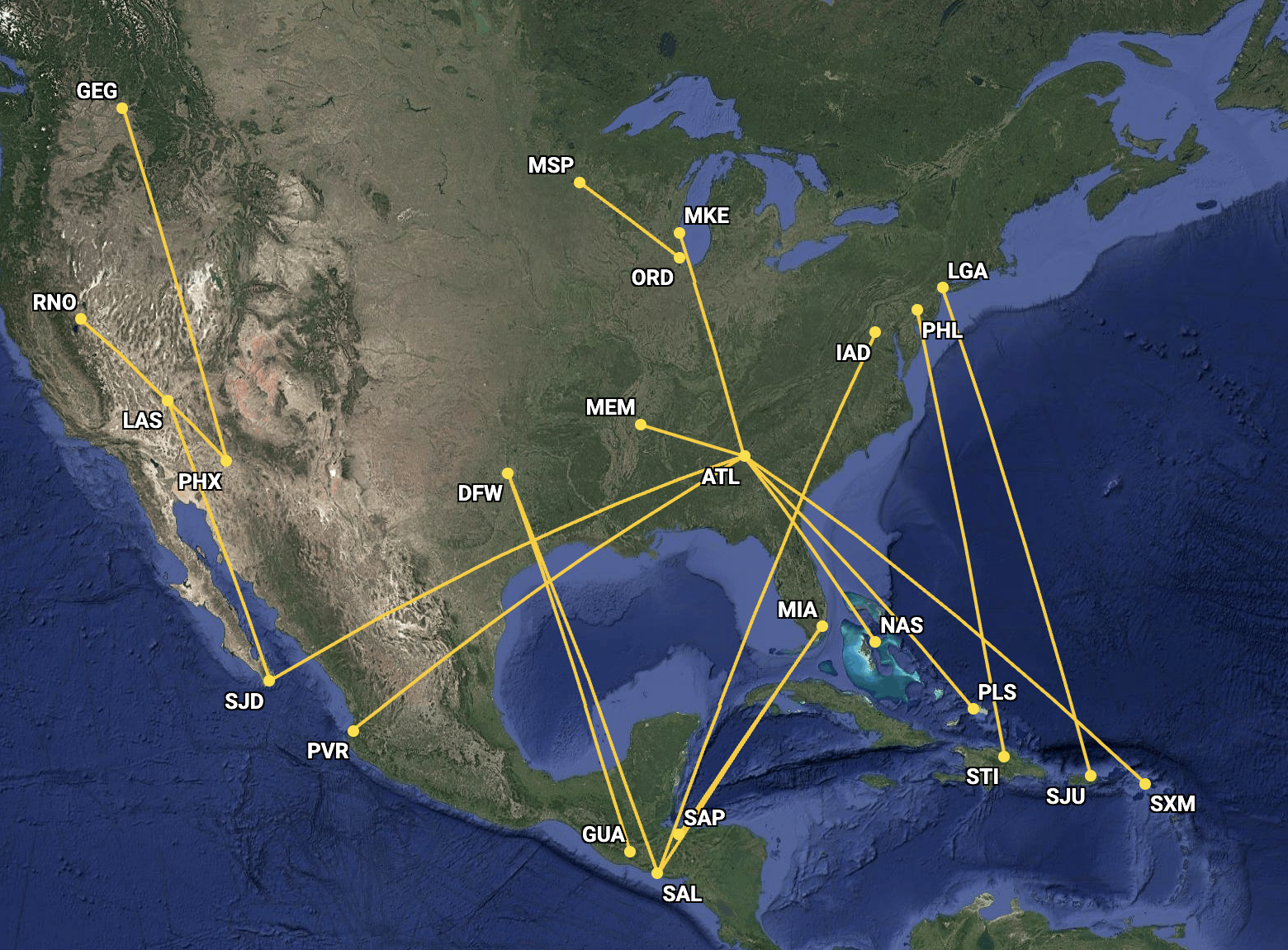 On September 4, 2025, Frontier Airlines announced 22 new routes across its network, targeting growth across the United States, the Caribbean, and Latin America. Some of the new routes originate from major fortress hubs for other airlines, including Hartsfield-Jackson Atlanta International Airport (ATL), Dallas-Fort Worth International Airport (DFW), and Miami International Airport (MIA).