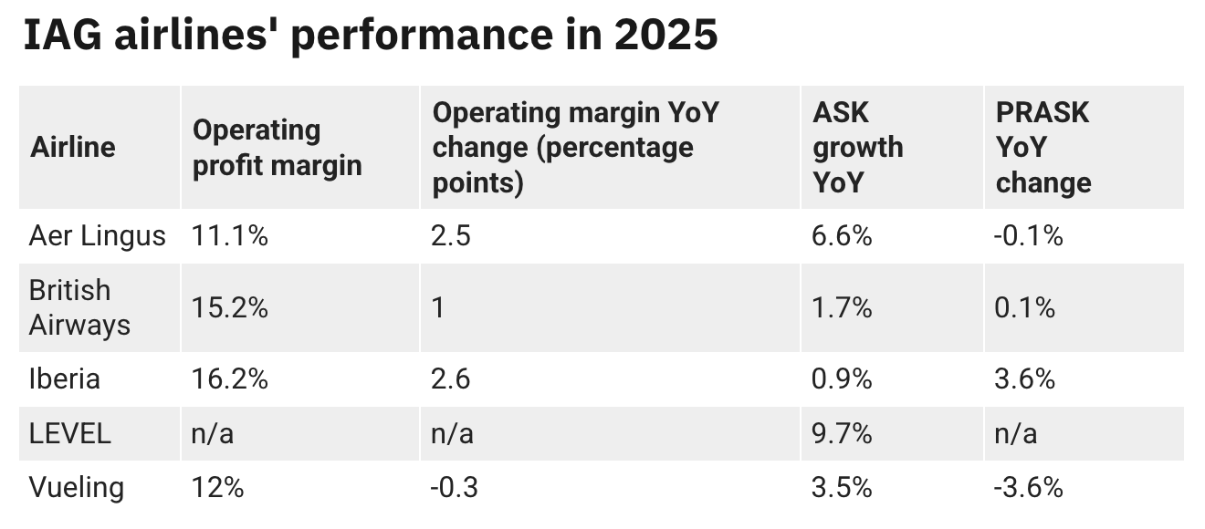 “The biggest drivers of the Group’s increase in operating profit for 2025 were Iberia and British Airways, which saw operating profit before exceptional items improve” by €286 million ($337.6 million) and £182 million ($245.5 million), respectively.