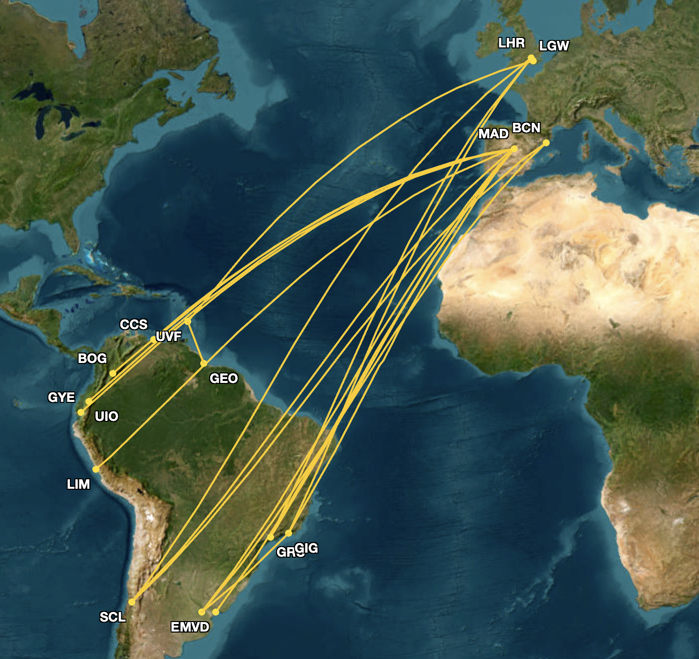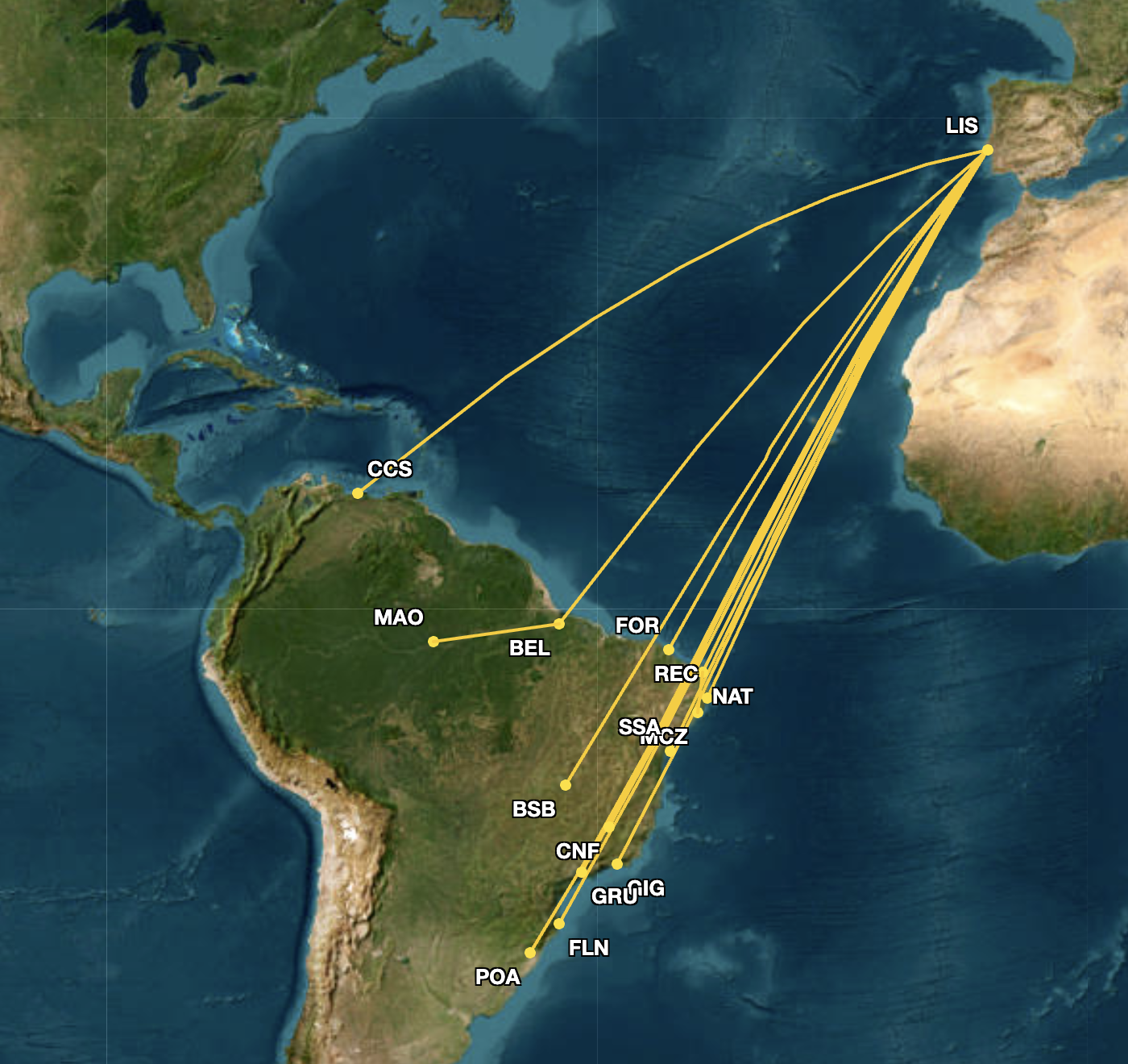 According to Cirium’s Diio Mi, during the recent summer 2025 season, in August 2025, TAP Air Portugal offered 104 weekly departures to South America, flying from Lisbon Airport (LIS) and Porto Airport (OPO) to 12 destinations on the continent.