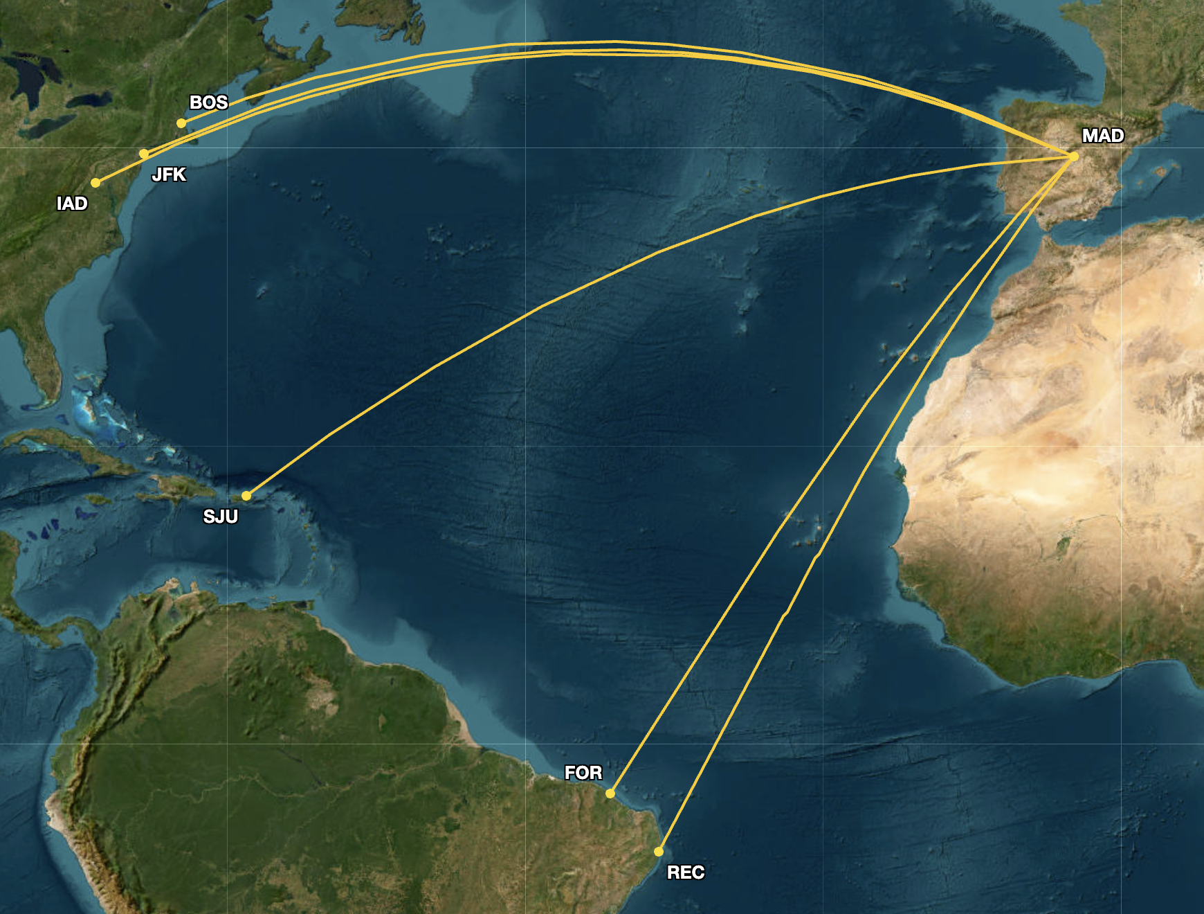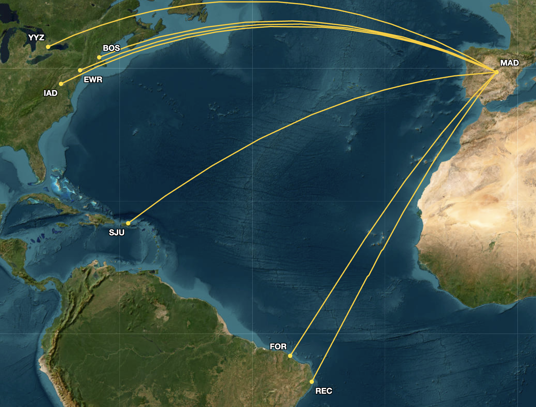 Cirium’s Diio Mi also showed that United Airlines, and before their merger, Continental Airlines, were the only airlines to fly between MAD and EWR since at least 2000.