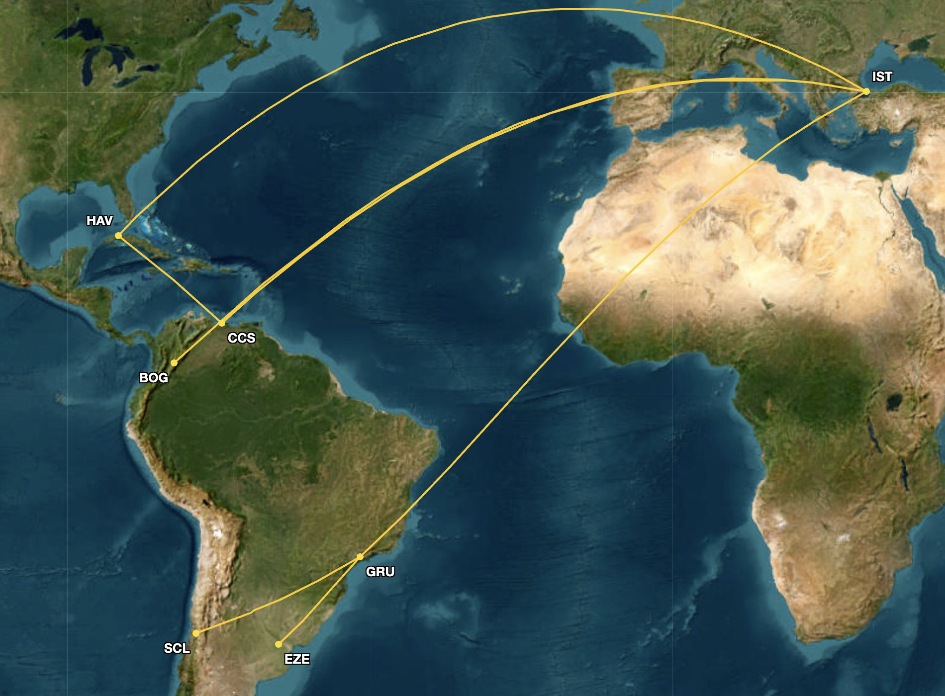 The big prize, which IAG was after as well, is Air Europa’s reach across South America. Cirium’s Diio Mi showed that Turkish Airlines has scheduled flights to five destinations across the continent in October 2025, while the Spanish carrier’s South American Network encompasses 13 airports.
