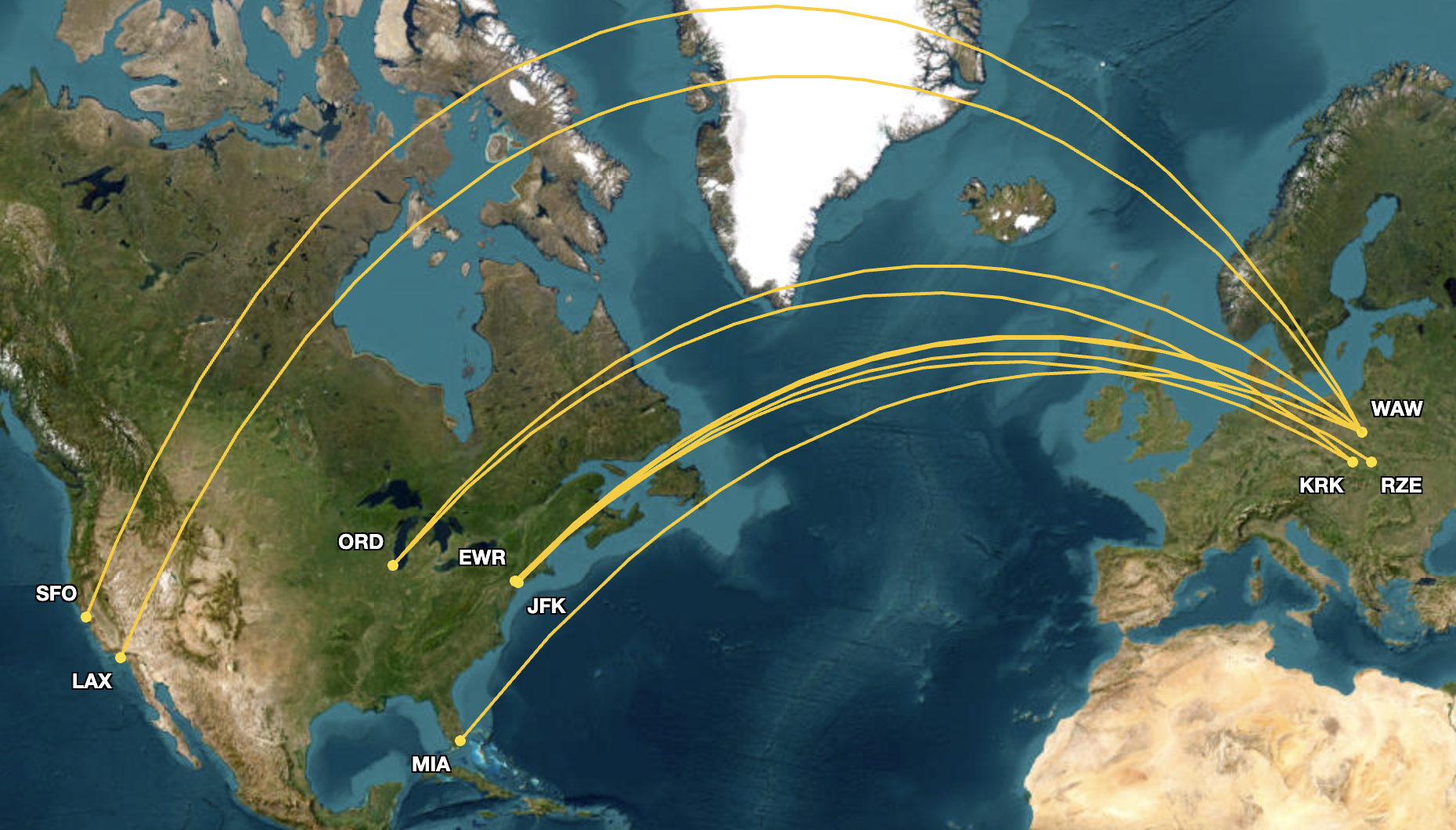 The Polish carrier has also scheduled flights to Chicago O’Hare International Airport (ORD), Miami International Airport (MIA), Newark Liberty International Airport (EWR), New York John F. Kennedy International Airport (JFK), and the aforementioned LAX.
