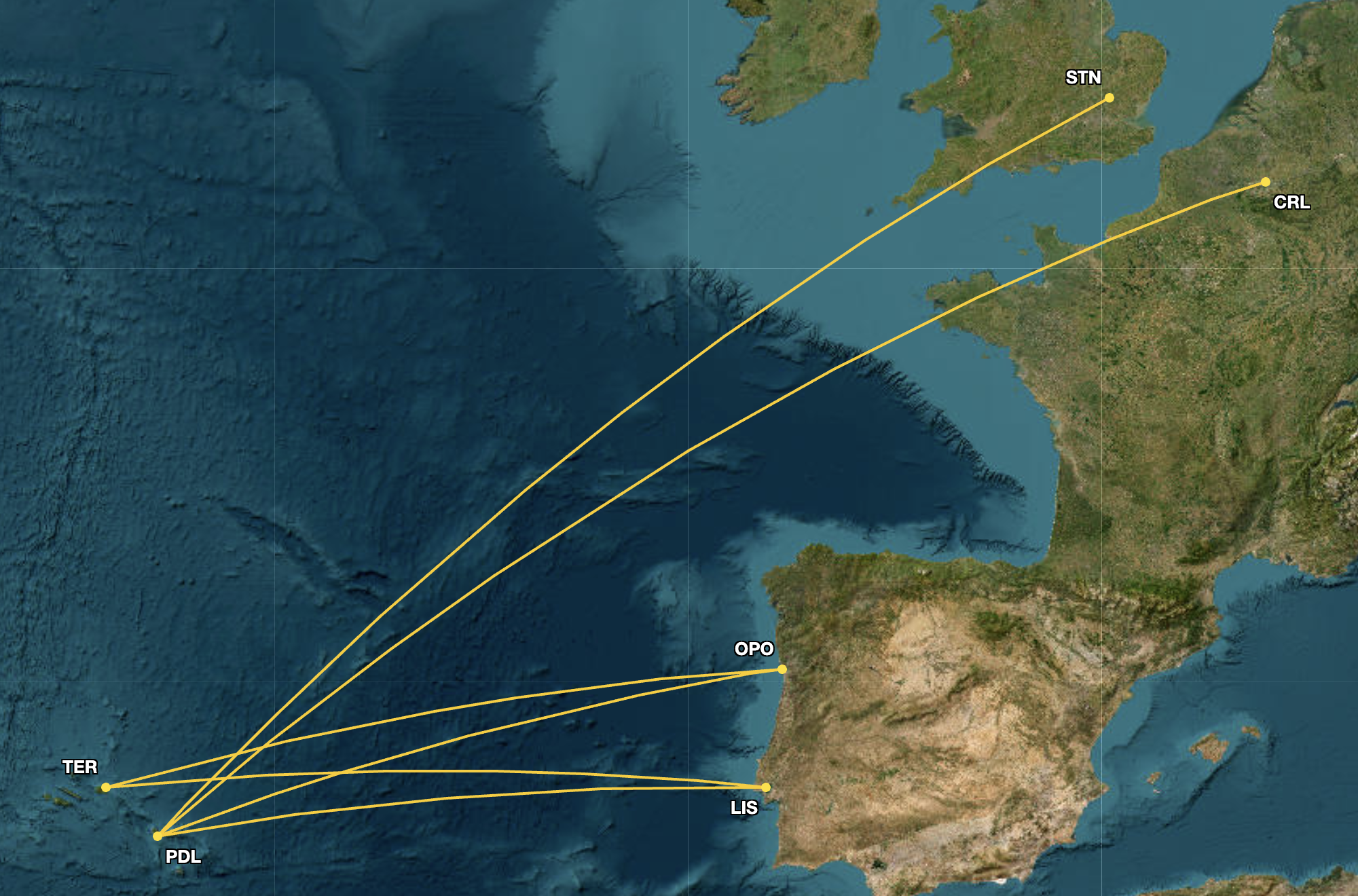 In August, the Irish low-cost carrier’s network from the Azores was slightly more extensive, with flights to four destinations from PDL and the same pair of routes from TER. Ryanair had a total of 27 weekly departures from the two airports.