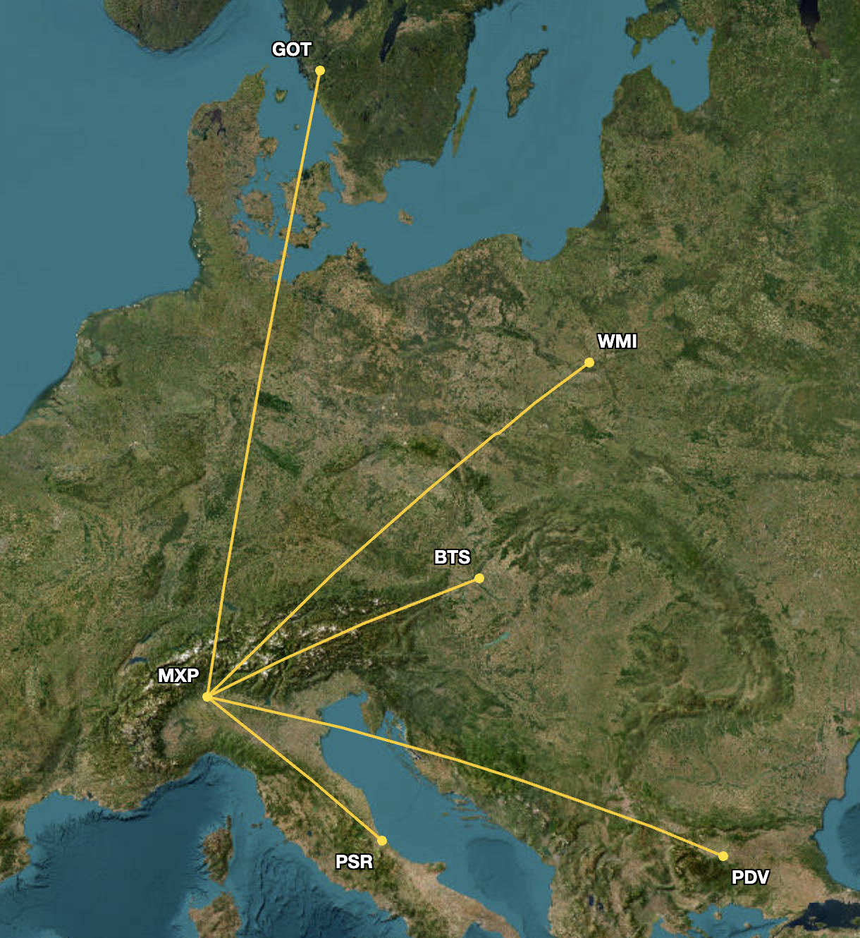As a result, Ryanair’s network from the two airports will grow to 120 destinations, or five more. The new quintet of connections is from MXP to Bratislava Airport (BTS), Gothenburg-Landvetter Airport (GOT), Pescara Abruzzo Airport (PSR), Warsaw Modlin Airport (WMI), and Plovdiv International Airport (PDV).