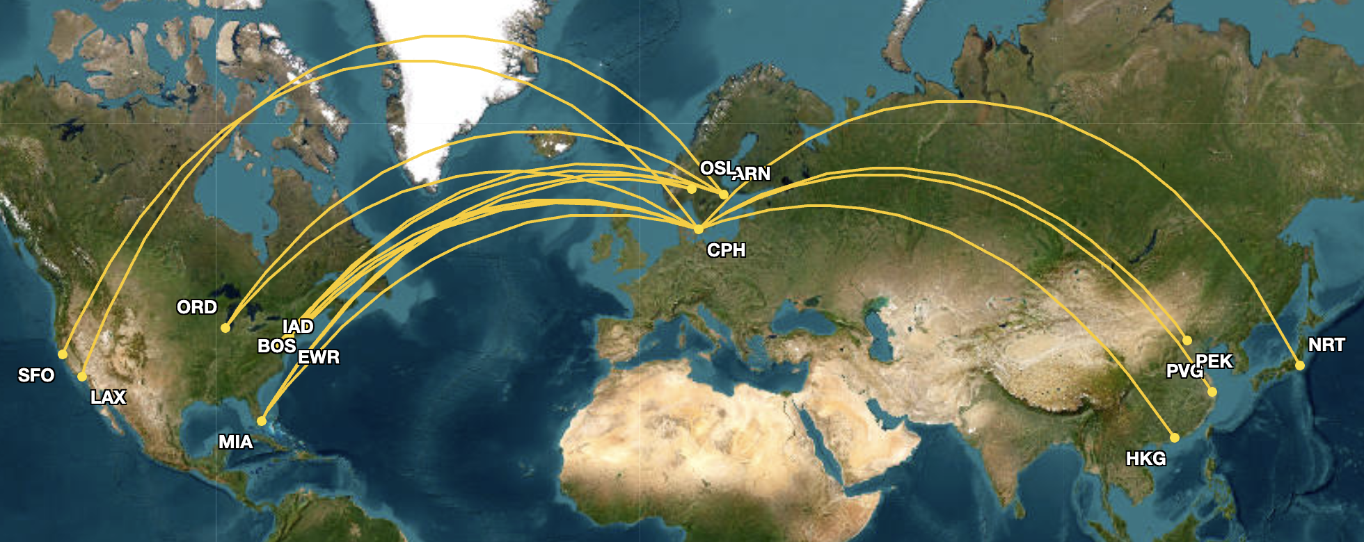 The airline’s intercontinental network in 2019 was more limited than today and also more spread out between the hubs. In 2019, SAS operated 17 non-European long-haul routes, seven of which were served from either OSL or ARN.