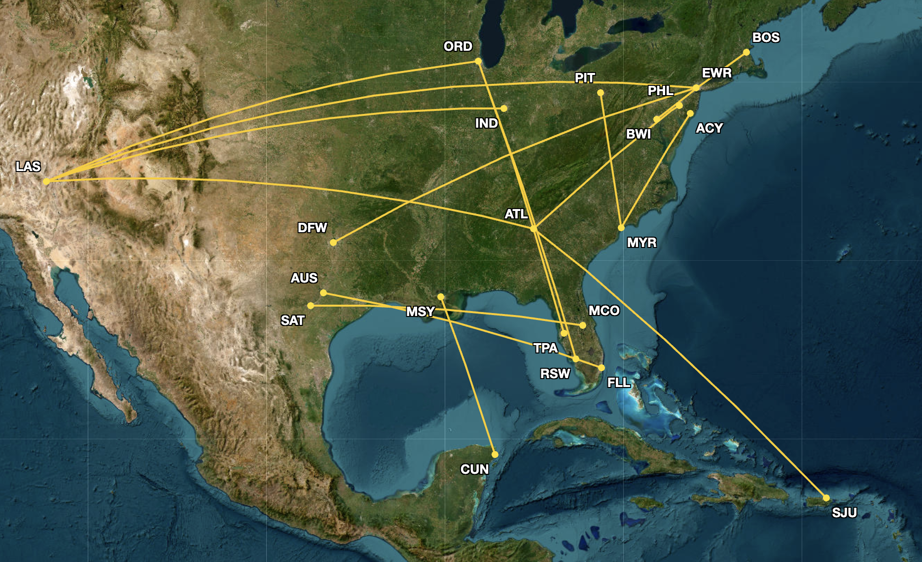 There are also more than a handful of routes that have been removed from its schedule. This includes daily flights between Newark Liberty International Airport (EWR) and Las Vegas Harry Reid International Airport (LAS), and daily departures from Chicago O’Hare International Airport (ORD) to Hartsfield-Jackson Atlanta International Airport (ATL).